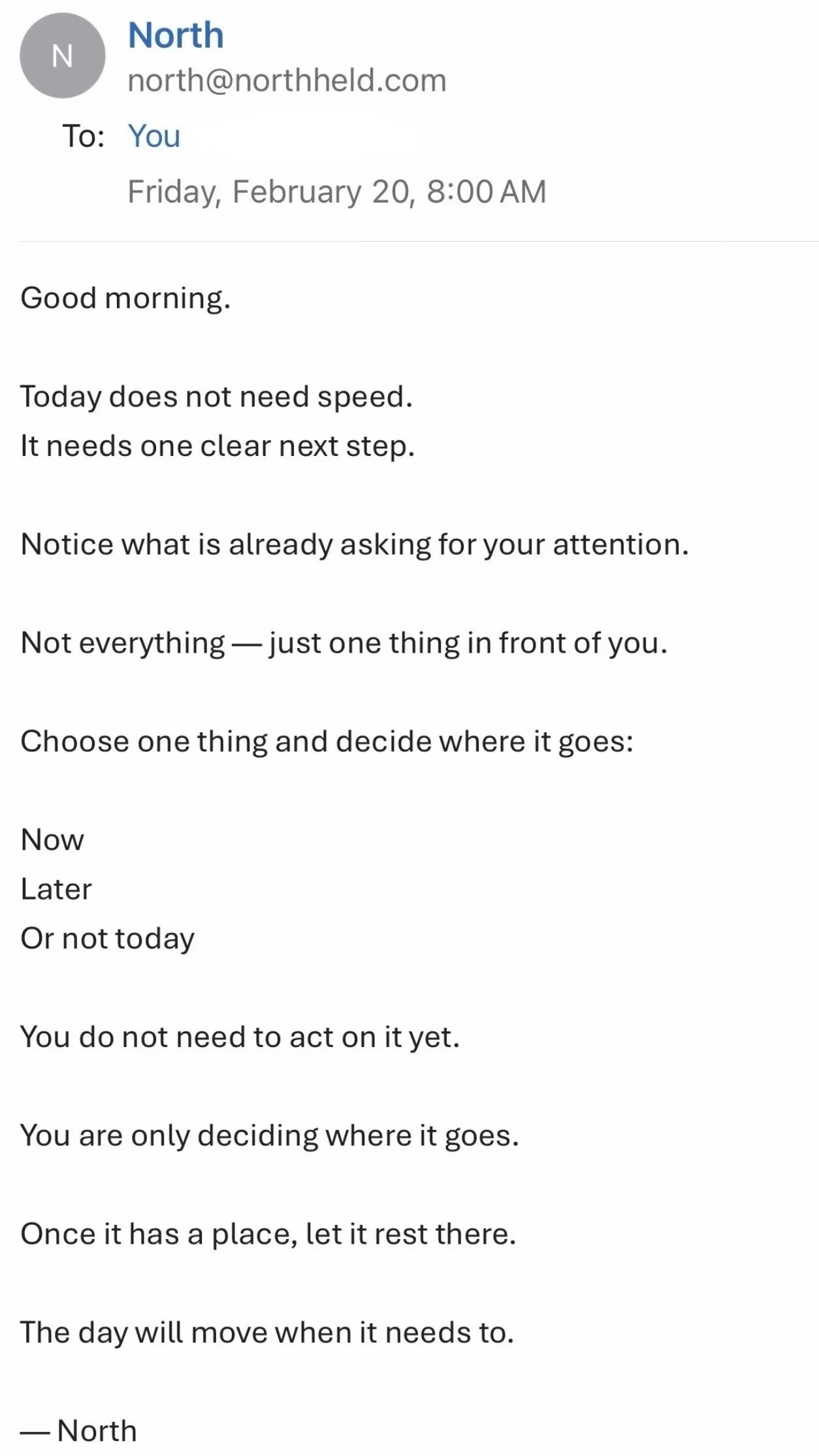 “My inbox is constant noise. NORTH is one of the few things I actually read.”